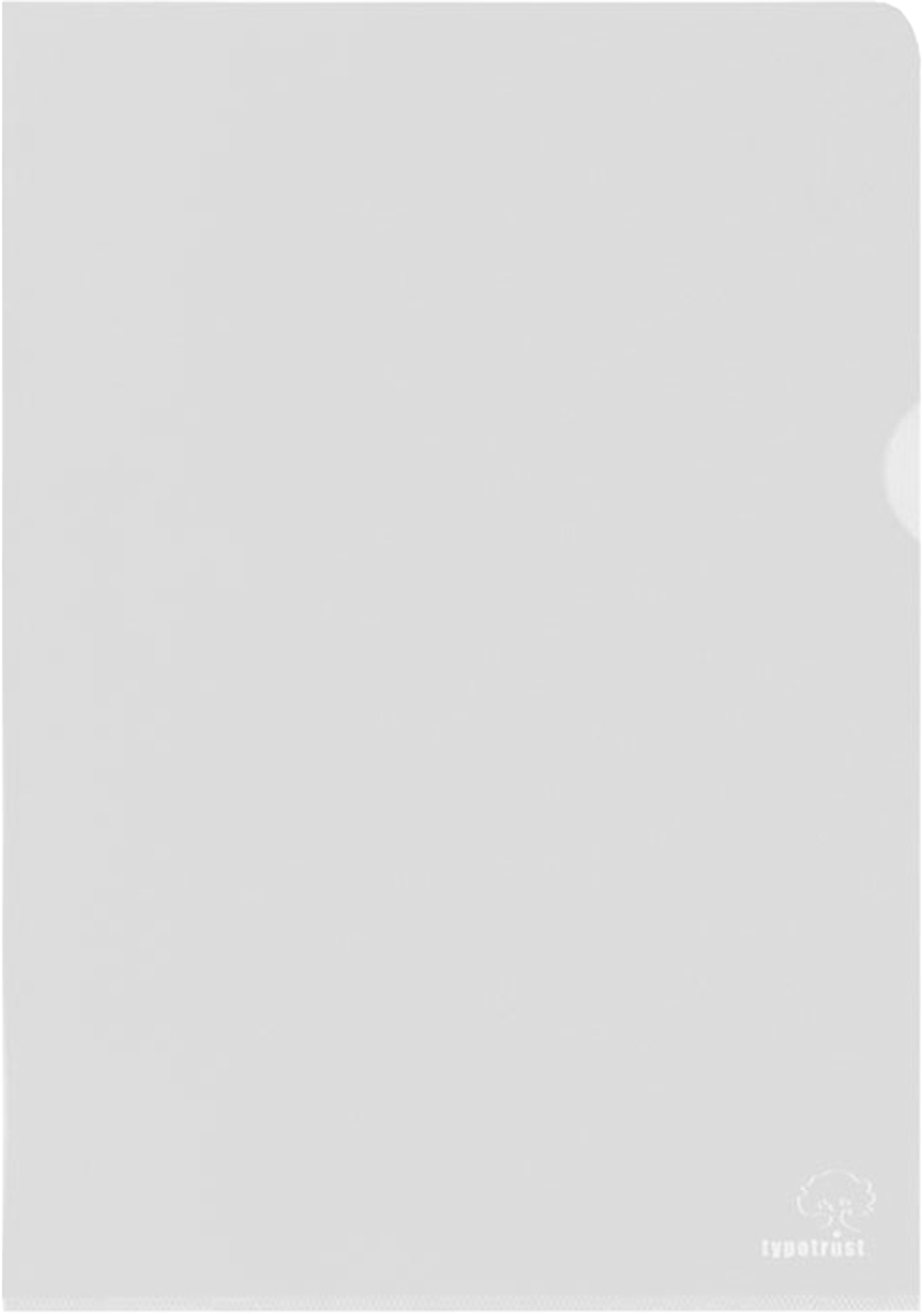 Διαφανείς PP αδιάβροχες ζελατίνες Typotrust τύπου L σε συσκευασία των 25 τεμαχίων. Προστατεύει και συγκρατεί χαρτιά μεγέθους A4.